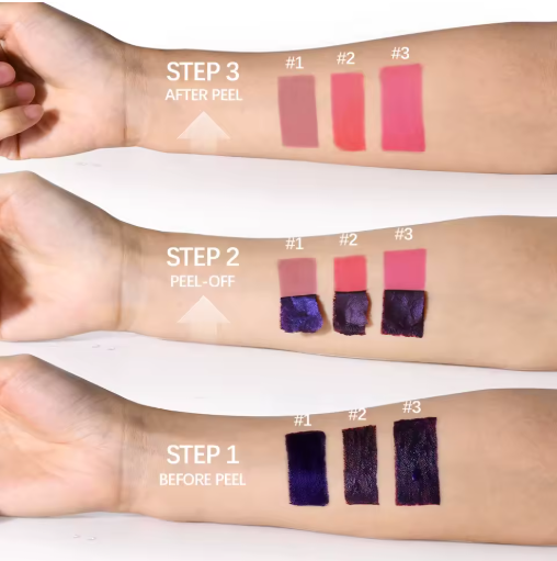 Ditch the touch-ups! Our Peel Off Lip Stain reveals your flawless, vibrant color in seconds. Waterproof, transfer-proof, and totally kiss-proof for all-day confidence.